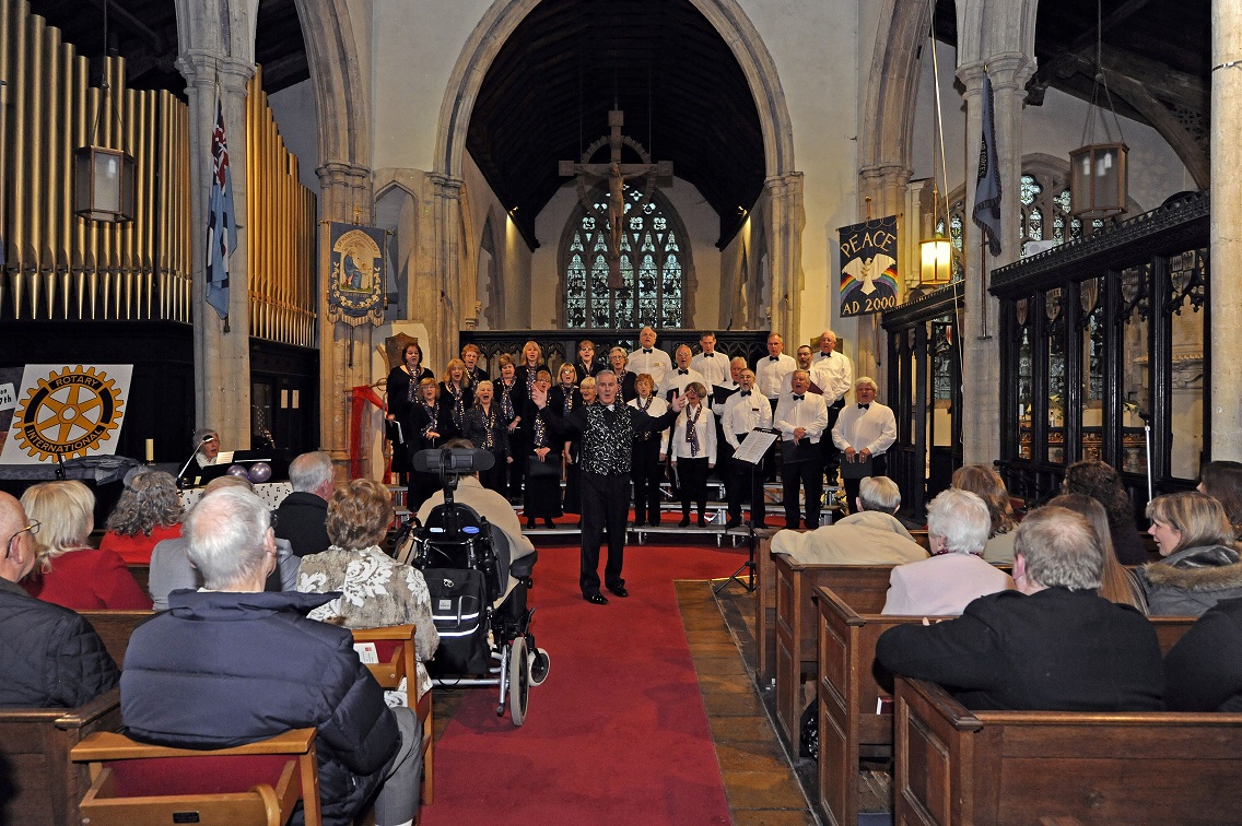 | Rotary Voices turned out a full choir for our annual Sing 4 Spring concert, held once again in St Mary Magdalene Church, Brampton. A really outstanding performance from the choir, and equally impressive performances from young musicians Sam and Roxanne, Granta Vale's 4 part harmony chorus and St Ives U3A Ukelele troupe.